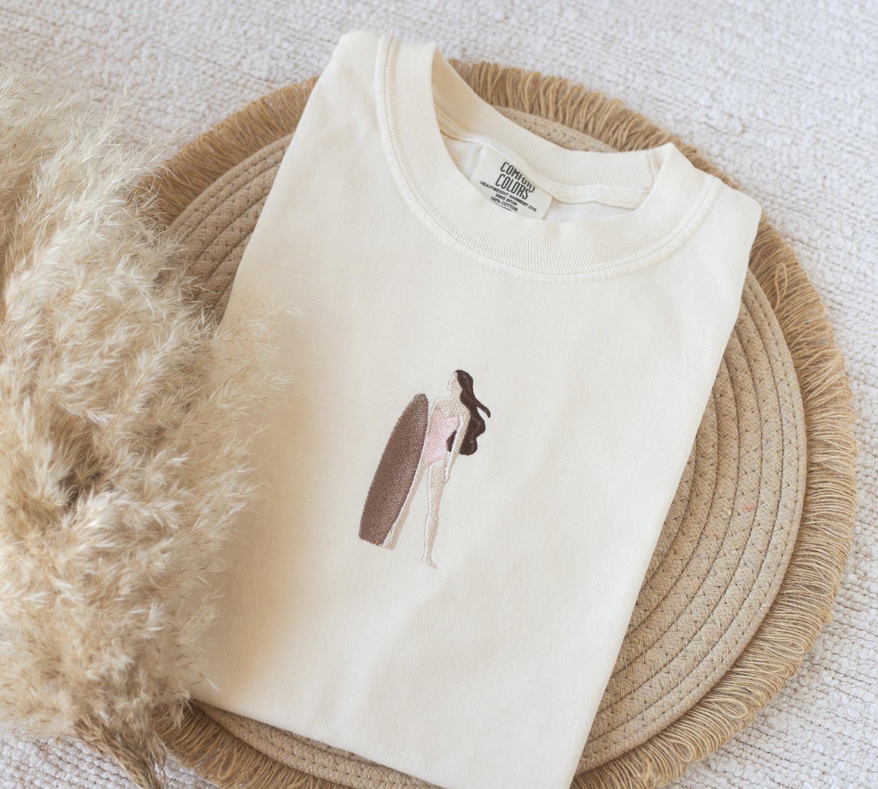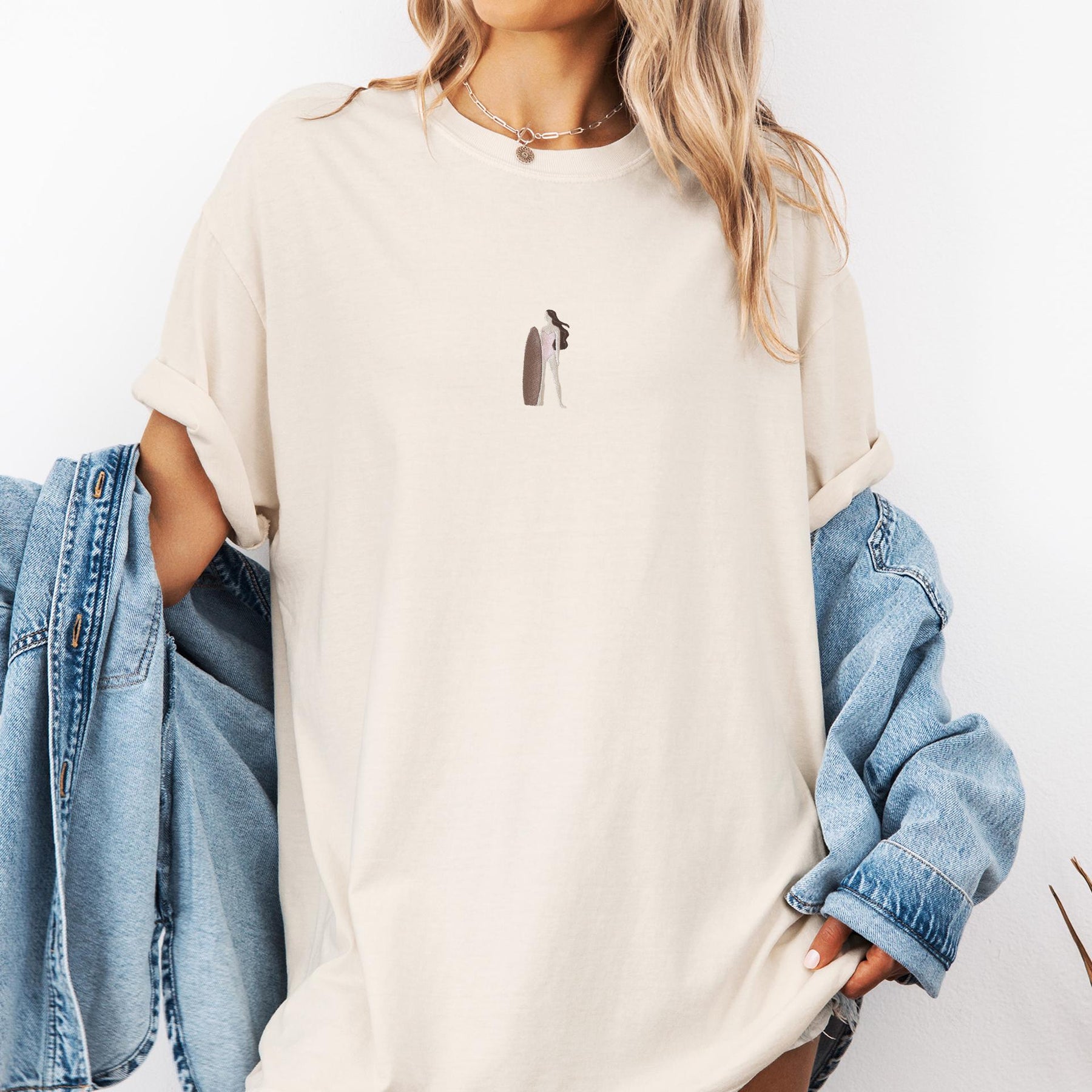 Embroidered Surfer Girl T-shirt, Embroidered Surfer Tshirt, Embroidered Beach Tee, Trendy Summer Tshirts for Women SURG-C-97