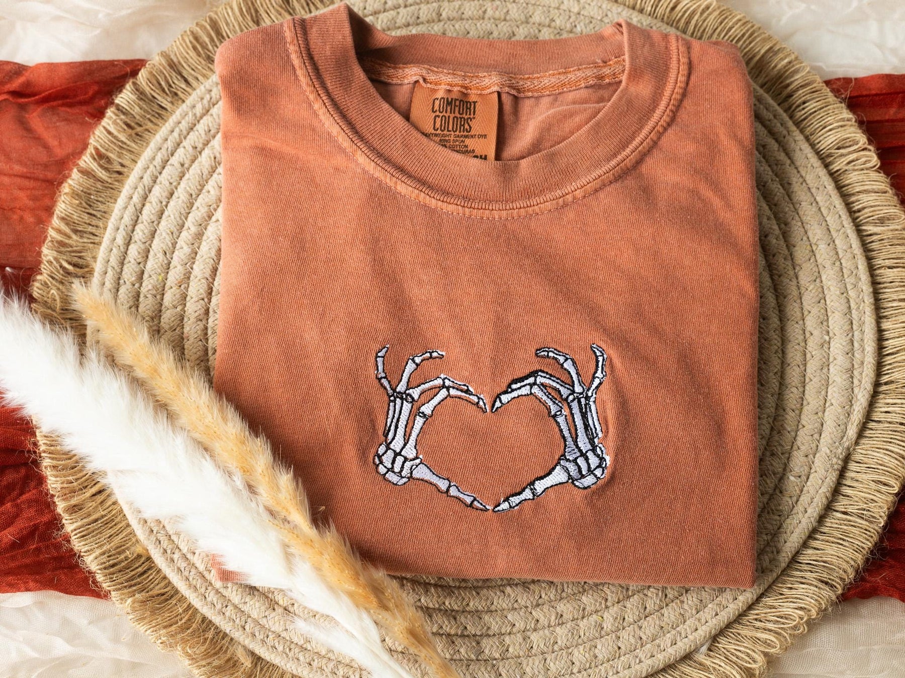 Embroidered Skeleton Heart Comfort Colors T-shirt