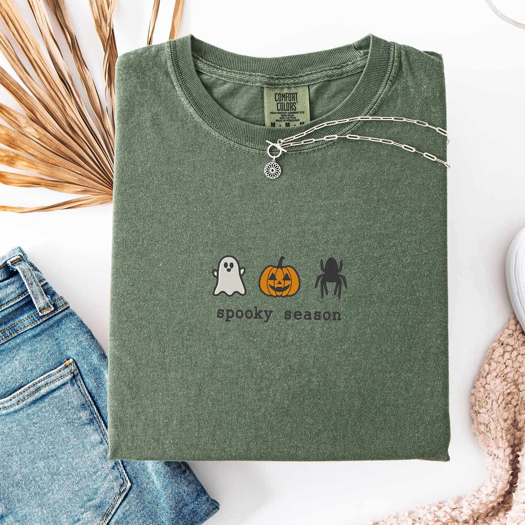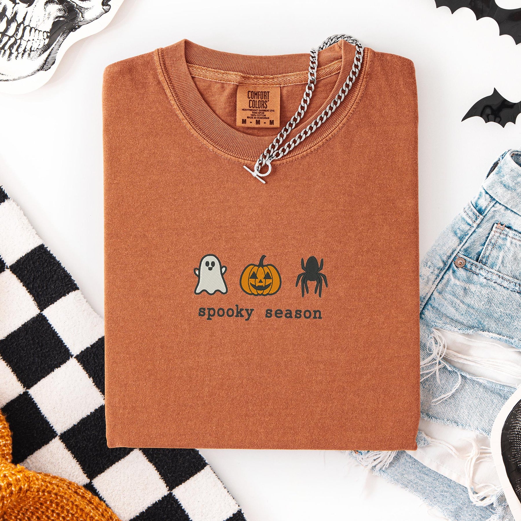 Embroidered Spooky Season Comfort Colors T-shirt, Halloween T-shirt, Trendy Fall T-shirt, Halloween Tee Cute Fall Goose Halloween SOZ-97-C